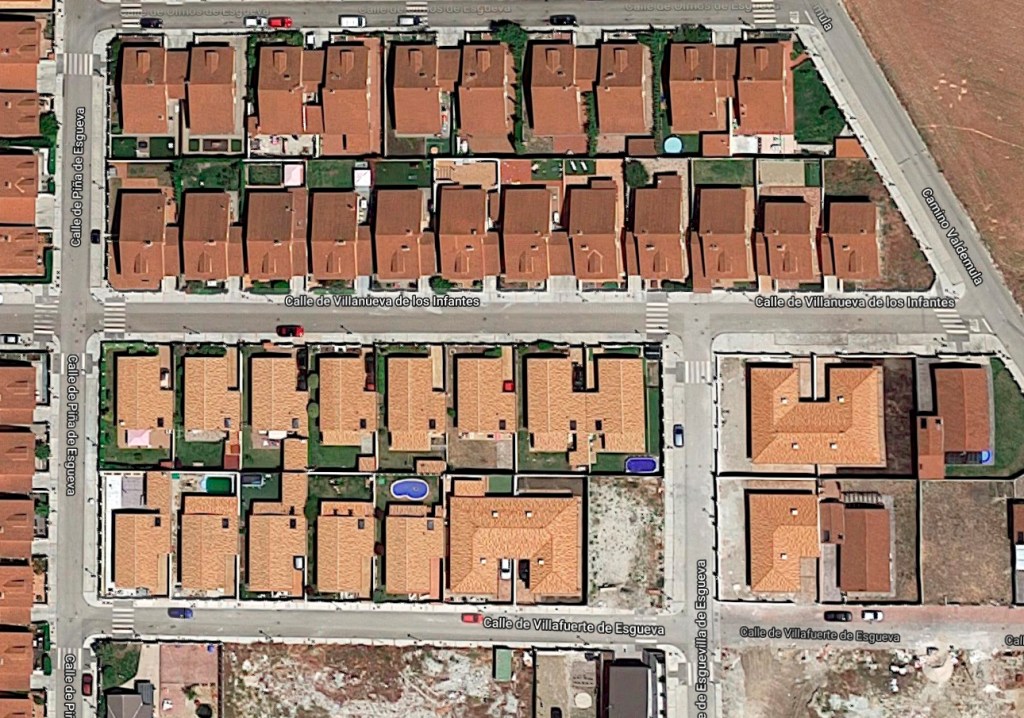 Las viviendas son de forma rectangular con garaje adosado, siendo éste el nexo de unión en las viviendas pareadas, con superficies de 74,00m² y 15,00m² respectivamente.
