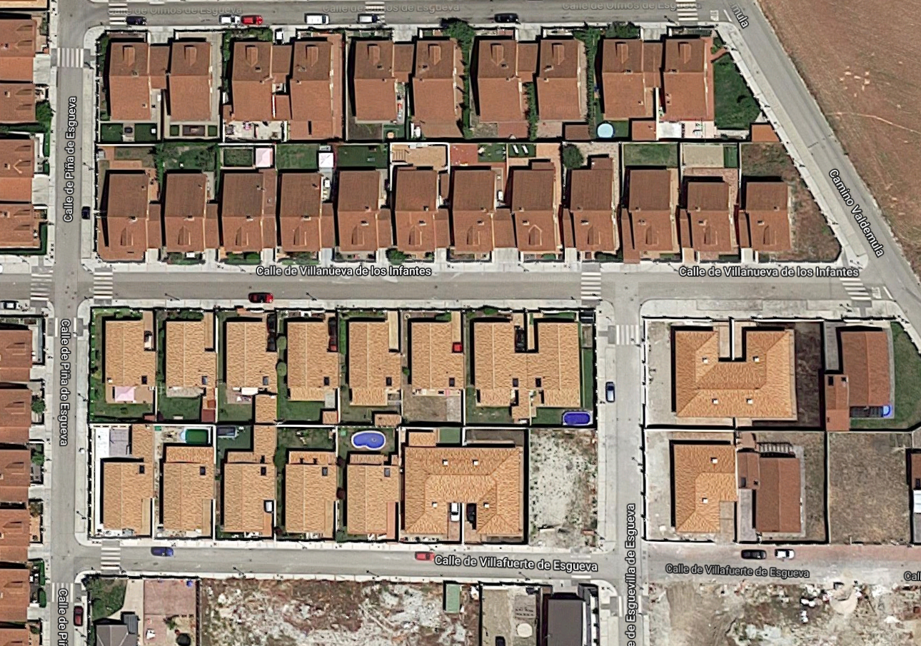 Las viviendas son de forma rectangular con garaje adosado, siendo éste el nexo de unión en las viviendas pareadas, con superficies de 74,00m² y 15,00m² respectivamente.