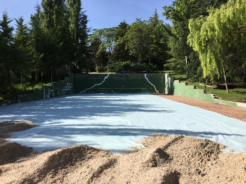Partiendo de una antigua pista de tenis, adaptamos el espacio y su base para la ejecución de una pista de entrenamiento para la práctica ecuestre.